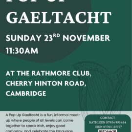 Join Us for Cambridge’s First Pop-Up Gaeltacht – Celebrate the Irish Language! Cambridge Comhaltas is delighted to host our first-ever Pop-Up Gaeltacht on Sunday, 23rd November from 11:30am at The Rathmore Club, Cherry... READ MORE