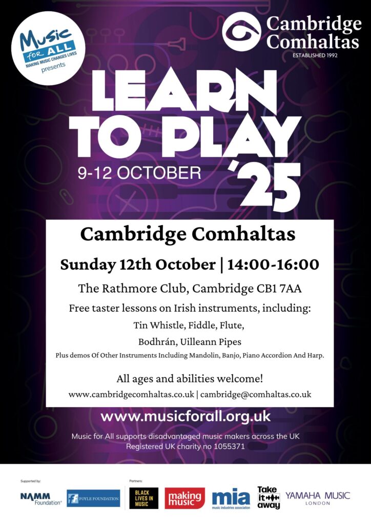 If you’re interested in coming along, please register your interest at cambridge@comhaltas.co.uk.