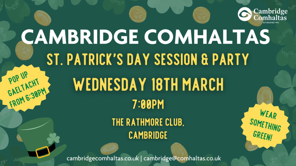 Whether you’re coming for the Gaeilge, the tunes, or just the atmosphere, we look forward to seeing you there.